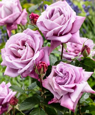 Красивые, серебристо-сиреневые цветки с великолепным ароматом. Цветет до поздней осени, хорошо сочетается с другими растениями на клумбе. Подходит для срезки.