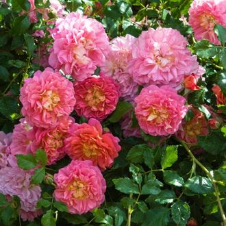 Кустовая английская роза Christopher Marlowe – привлекающая внимание роза. Начнем с описания цветков. Общий вид цветка сильно похож на старинные розы – густомахровые, более 40 лепестков. У них трехцветная окраска. Нижняя сторона лепестка сливочно-оранжевого цвета с красно-розовыми вкраплениями по внешнему краю, кончик – лимонно-желтый. Лицевая сторона лепестка почти полностью покрыта лососево-розовым цветом и лишь кончик – яркий, лимонно-желтый. Благодаря такой окраске цветок в полном розпуске похож на пион.