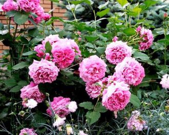 Цветки в сиреневых, лавандовых, мажентовых, пурпурных, или фиолетово-розовых тонах. Аромат насыщенный, с оттенками корицы, малины, пряностей и клубники. Цветки около 11 см в диаметре, средние или крупные, густомахровые, в кистях, квартированные, полушаровидной формы. Цветение обильное, серией волн весь сезон. Куст компактный, хорошо разветвленный. Листва средних размеров, блестящая