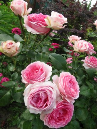 Джехим дю Белле (Joachim du Bellay) - особенностью сорта являются компактные размеры, поэтому кусты подойдут для высадки даже на небольшом садовом участке. Тип побегов – прямостоячий. Листья – зеленые, с полуглянцевой поверхностью, средних размеров. При правильном уходе растение быстро приживается. Бутоны формируются в соцветия, средний диаметр цветка составляет 9 см. Первые цветы появляются в июне, последние отцветают ближе к октябрю, перед самым наступлением заморозков. Дополнительная особенность – повторное цветение куста при надлежащем уходе. Яркий цвет бутонов и лёгкий приятный аромат – ключевые преимущества цветка.