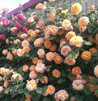 Цветы желтые, густомахровые (до 100 лепестков) цветки с ароматом мирры унаследовали от своих предков по характеристике heirloomroses.com оттенки абрикоса, лосося, розовые, персиковые, коралловые, некоторые оттенки красного, оранжево-красного и золотого. Богатая, темно-зеленая листва с оттенком синевы обеспечивает идеальное смешение всех красок, проявляющихся во время цветения сорта.