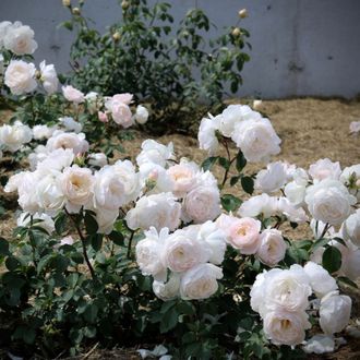 Очаровательная роза изысканной красоты с исключительно долгим сроком цветения. Бутоны теплого розового цвета раскрываются, чтобы показать цветки чистого белого цвета с легким намеком на розовый на самой ранней стадии цветения. Цветок чашеобразный с вогнутыми лепестками привлекающими к себе внимание игрой света и тени. Со временем цветок раскрывается пошире и можно увидеть блеск тычинок внутри. Цветки не теряют форму при влажной погоде и имеют сильный аромат мирры.