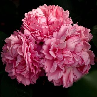 Цветы махровые, в соцветиях, с гофрированными резными краями, кармино-розовые,с сильным ароматом, в котором присутствуют нотки специй.