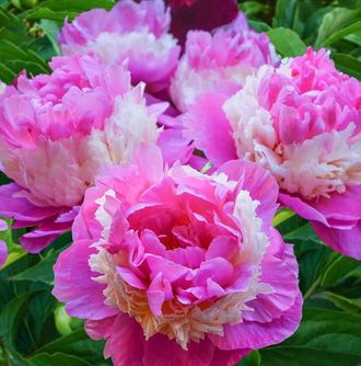 Махровый. Цветок диаметром 13-17 см, очень необычный, трёхслойный, с нежно-розовыми и кремово-белыми чередующимися слоями лепестков. Аромат очень хороший. Куст высотой 70 см. Среднего срока цветения. Идеально подходит для срезки.