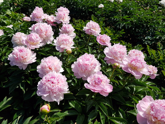 Пион Angel Cheeks — поздний махровый - бомбовидный, крупный, прекрасный, ароматный, с махровыми мягкими камео-розовыми цветками, с красными веснушками на верхушках лепестков, двойным рядом розовых защитных лепестков. Бело-кремовое кольцо из мелких лепестков у основания делает этот цветок особенным.