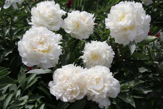 Розовидный, махровый, белоснежный цветок. Ароматный. Куст сильный, стебли прочные, очень темно-зеленая листва. Высоко ценится в срезке.
